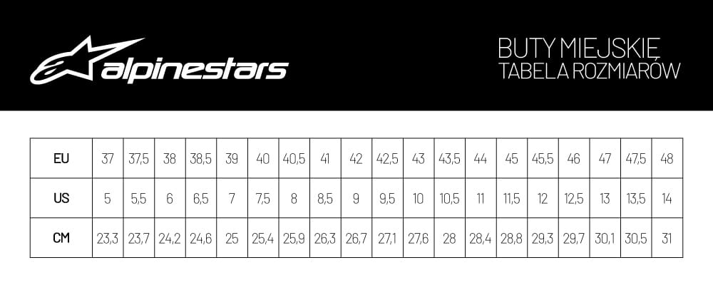 - Certyfikat CE EN13634:2017 – spełnia europejskie normy bezpieczeństwa dla obuwia motocyklowego.