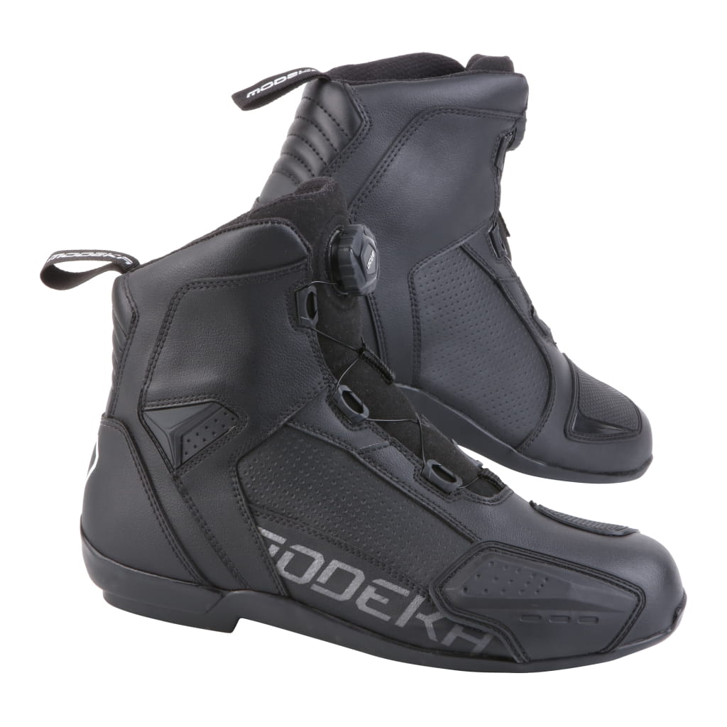 Krótkie buty motocyklowe wyposażone w system szybkiego zapinania ATOP®. Za bezpieczeństwo odpowiadają protektory kostek i slidery. Idealnie sprawdzą się zarówno w mieście, jak i w trasie.