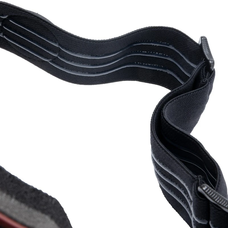 - Pasek z silikonowym nadrukiem od wewnątrz zapobiegającym zsuwaniu się gogli podczas jazdy