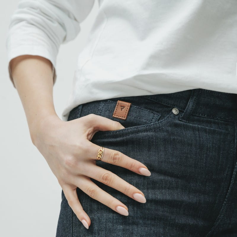 - warstwa zewnętrzna: denim jeans, bawełna, poliester, elastan