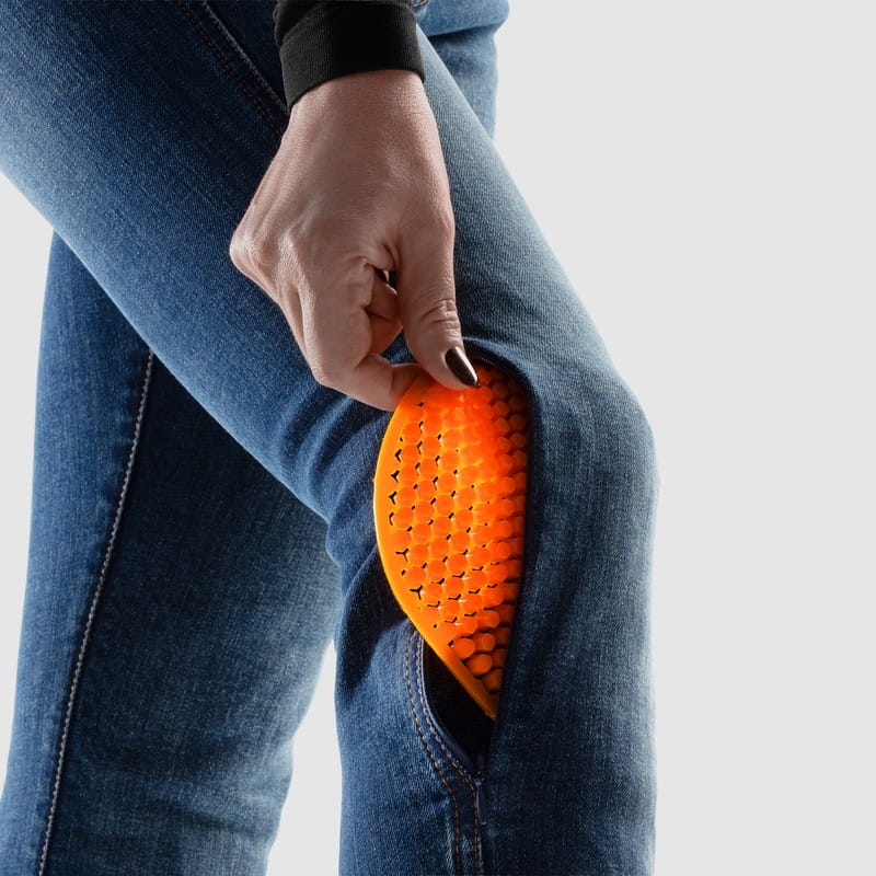 Rebelhorn Classic Mono Women - Damskie jeansy motocyklowe typu monolayer stworzone dla kobiet, które cenią klasyczny styl, wygodę i subtelny seksapil. Rebelhorn Classic Mono Women to odpowiedź marki na potrzeby motocyklistek poszukujących bezpiecznych i wygodnych spodni, które wyglądają jak klasyczne jeansy. Wysoki stan podkreśla kobiecą sylwetkę, a elastyczna tkanina i dopasowany krój gwarantują pełen komfort jazdy. Dzięki wyciąganym od zewnątrz protektorom kolan, po dotarciu na miejsce możesz z łatwością przekształcić je w zwykłe jeansy - bez zdejmowania spodni.