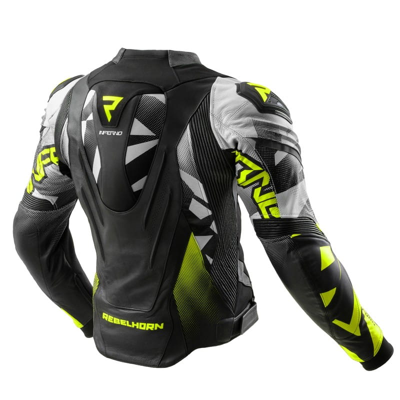 Rebelhorn Inferno oferuje maksymalny poziom ochrony dzięki ochraniaczom RE ZRO® na łokciach, barkach, plecach. Kurtka posiada także kieszeń na ochraniacz klatki piersiowej, który można dokupić osobno. Dodatkowo zewnętrzne slidery na barkach oraz wstawki z materiału Superfabric® wzmacniają szwy, szczególnie w okolicach łokci, zwiększając bezpieczeństwo na trasie i torze.