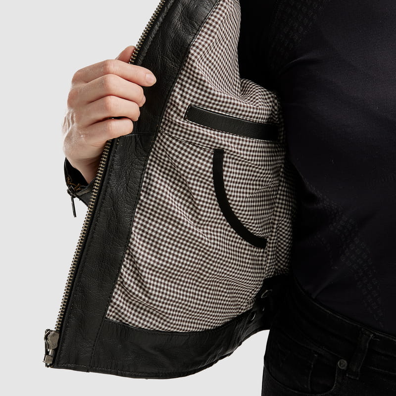 Dzięki starannemu wyborowi materiałów i klasycznemu krojowi, Hunter II doskonale sprawdzi się zarówno podczas jazdy na motocyklu, jak i w codziennym użytkowaniu po wyjęciu ochraniaczy.