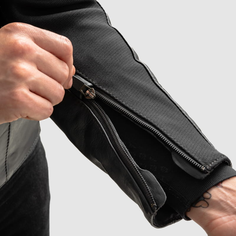 Kurtka jest wyposażona w centralny panel wentylacyjny, który można ukryć pod głównym zamkiem, zapewniając optymalną wentylację podczas jazdy.