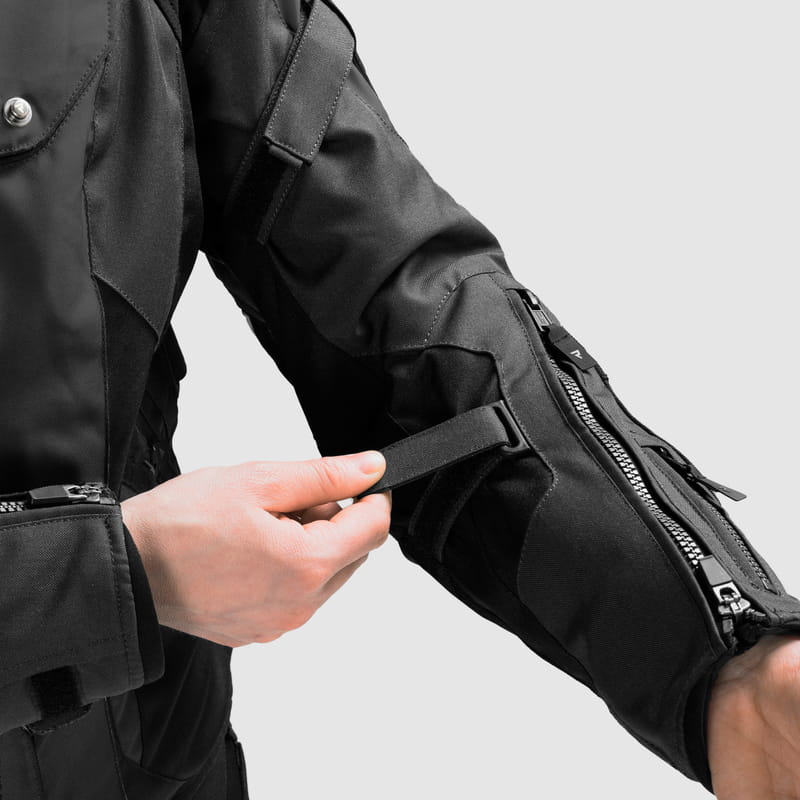 - Zamki łączące typu 8VST: Dwa rodzaje zamków (360 oraz krótki) do łączenia kurtki ze spodniami,