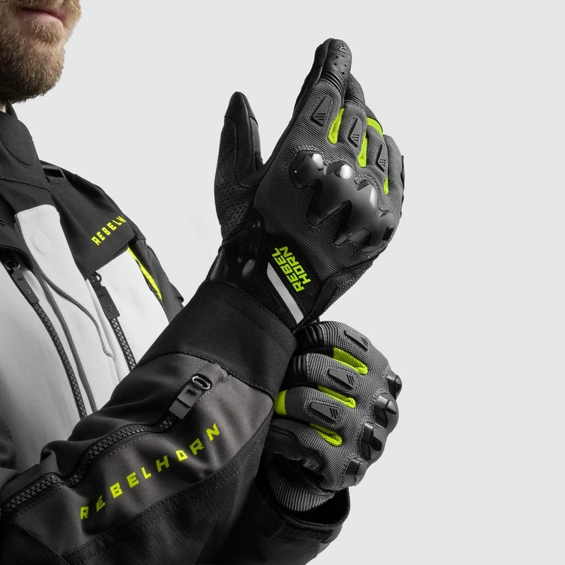 RĘKAWICE MOTOCYKLOWE REBELHORN DEFENDER BLACK GREY FLUO YELLOW