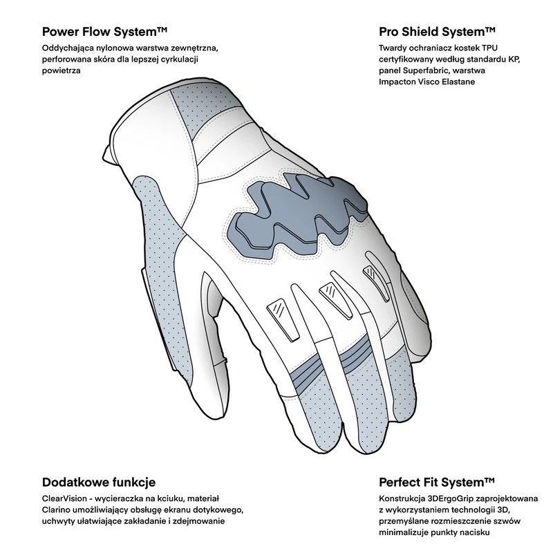- Warstwa Impacton Visco Elastan absorbująca energię uderzenia na wierzchu i spodzie dłoni.