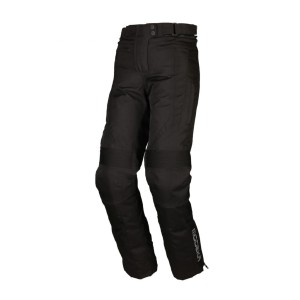 Trójwarstwowe damskie spodnie motocyklowe wyposażone w niezbędne protektory (kolana, kieszenie na protektory bioder) oraz wypinaną membranę wodoodporną Hitex® i wypinane ocieplenie