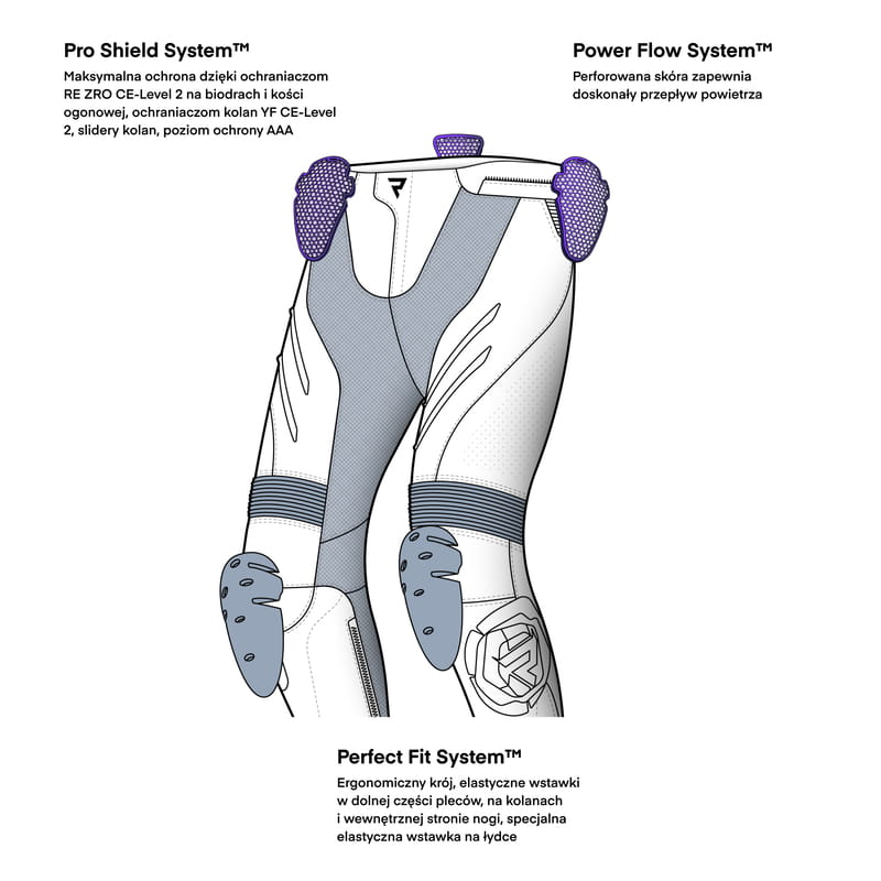 Spodnie Rebelhorn Inferno wyposażone są w zaawansowane ochraniacze YF i RE ZRO®, oraz spełniają najwyższy poziom ochrony AAA. Spodnie posiadają w zestawie ochraniacze kolan i bioder, wkładkę ochronną na kość ogonową oraz zewnętrzne slidery kolan, które dodatkowo zwiększają ochronę podczas sportowej jazdy.