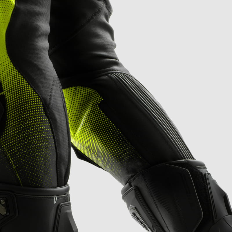 Sportowe skórzane spodnie motocyklowe Rebelhorn Inferno zostały zaprojektowane z myślą o motocyklistach poszukujących ochrony i wygody na najwyższym poziomie. Wykonane z miękko wyprawionej skóry bydlęcej w połączeniu z elastycznym materiałem 4-way stretch, zapewniają doskonałe dopasowanie i ergonomię użytkowania. Spodnie idealnie łączą się z kurtką Rebelhorn Inferno, tworząc kompletny dwuczęściowy kombinezon motocyklowy, który sprawdzi się zarówno w codziennej jeździe, jak i na torze.